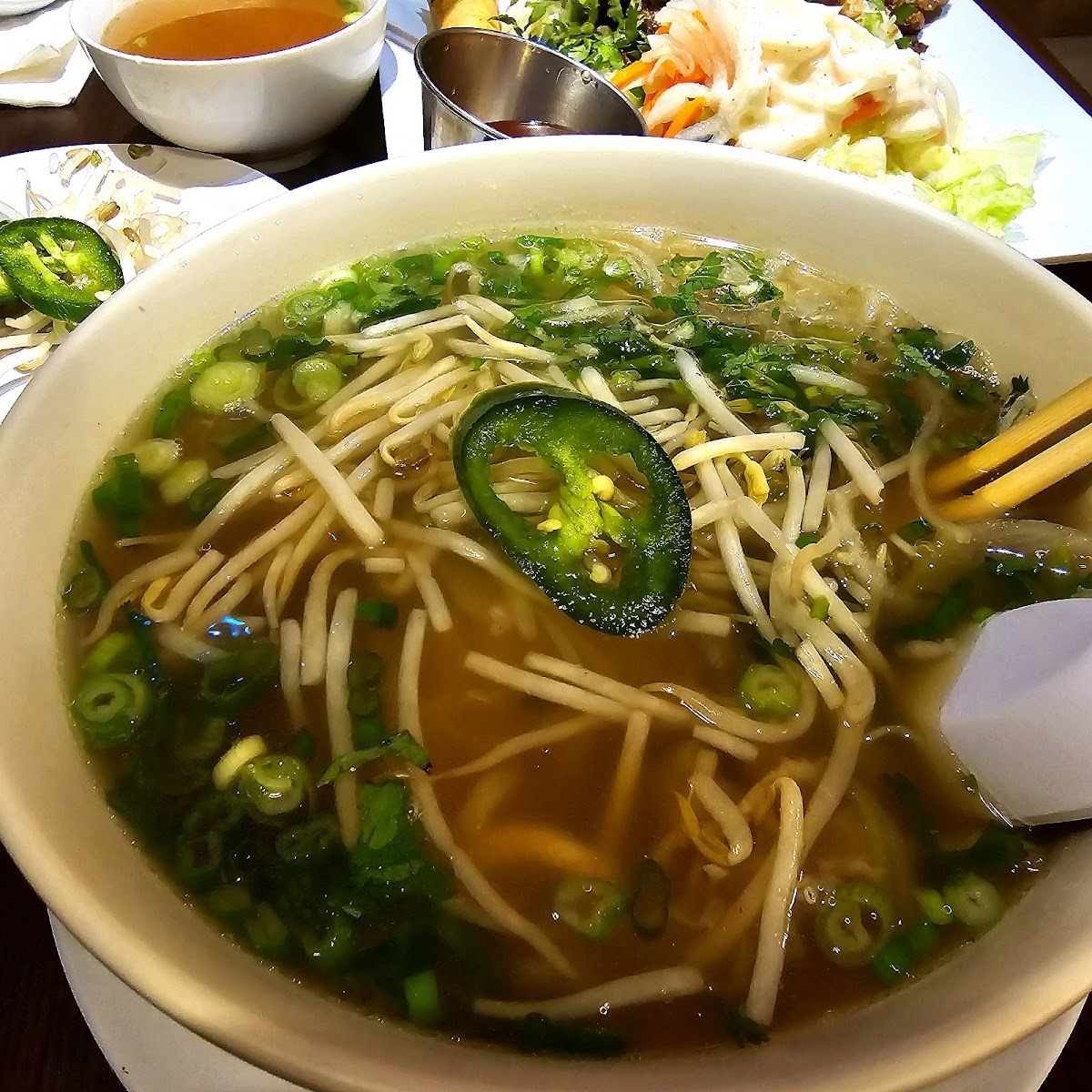 The menu clearly leans into traditional flavors, with highlights such as the House Special Combo Pho featuring a mix of rare steak, brisket, tendon, and meatballs. The broth here stands out—it’s flavorful and rich without being overly heavy, and the noodles hold a pleasing consistency. For those who prefer a bit of heat, the spicy pho offers a satisfying kick that complements the savory base. Beyond pho, there’s a nice variety of rice dishes and Vietnamese staples like BBQ pork, pork chop rice, and banh mi sandwiches, all made with fresh ingredients and packed with bold flavors.